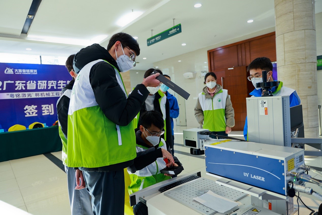 論壇現(xiàn)場(chǎng),還特設(shè)了學(xué)習(xí)實(shí)踐區(qū),粵銘激光集團(tuán)為參會(huì)學(xué)生們帶去了自主研發(fā)的高精密紫外激光打標(biāo)機(jī),引發(fā)了同學(xué)們的觀摩熱情,紛紛親自上手操作體驗(yàn)。通過(guò)實(shí)際操作,學(xué)生們對(duì)前沿激光技術(shù)有了更加直觀、深入的認(rèn)知。