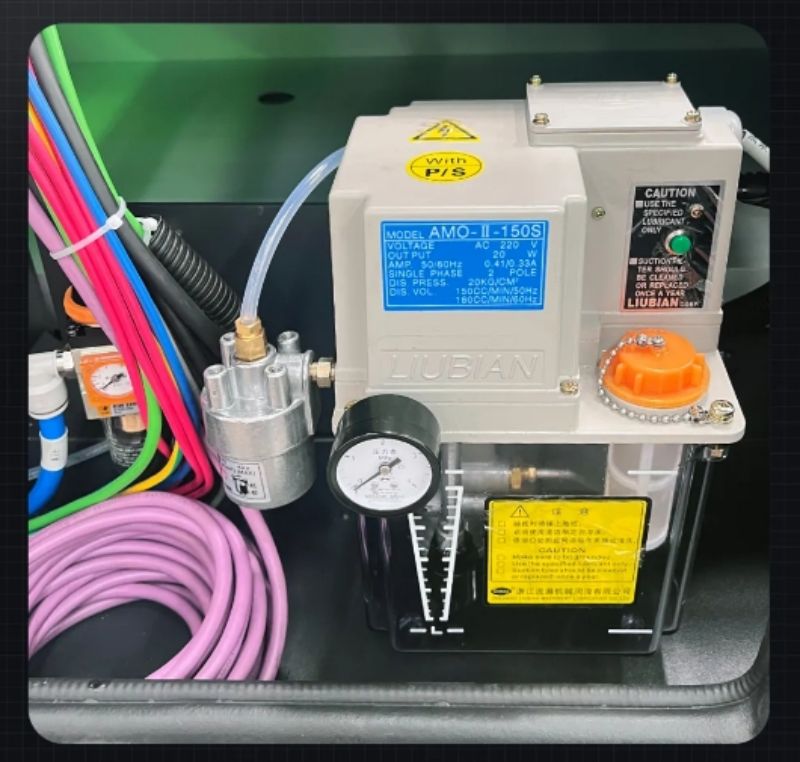 定時(shí)自動(dòng)供油,對(duì)機(jī)床的滑塊和傳動(dòng)齒輪定量稀油潤(rùn)滑