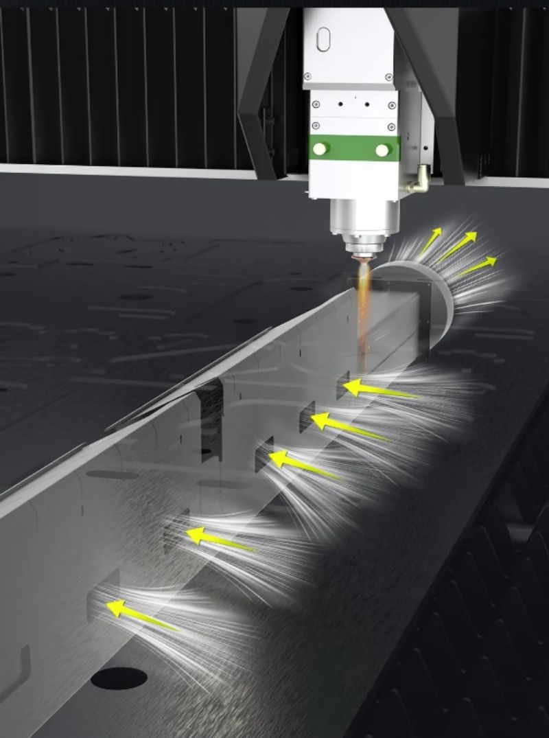根據(jù)切割區(qū)域自動(dòng)開(kāi)合抽風(fēng)集塵口,除塵更精準(zhǔn)徹底