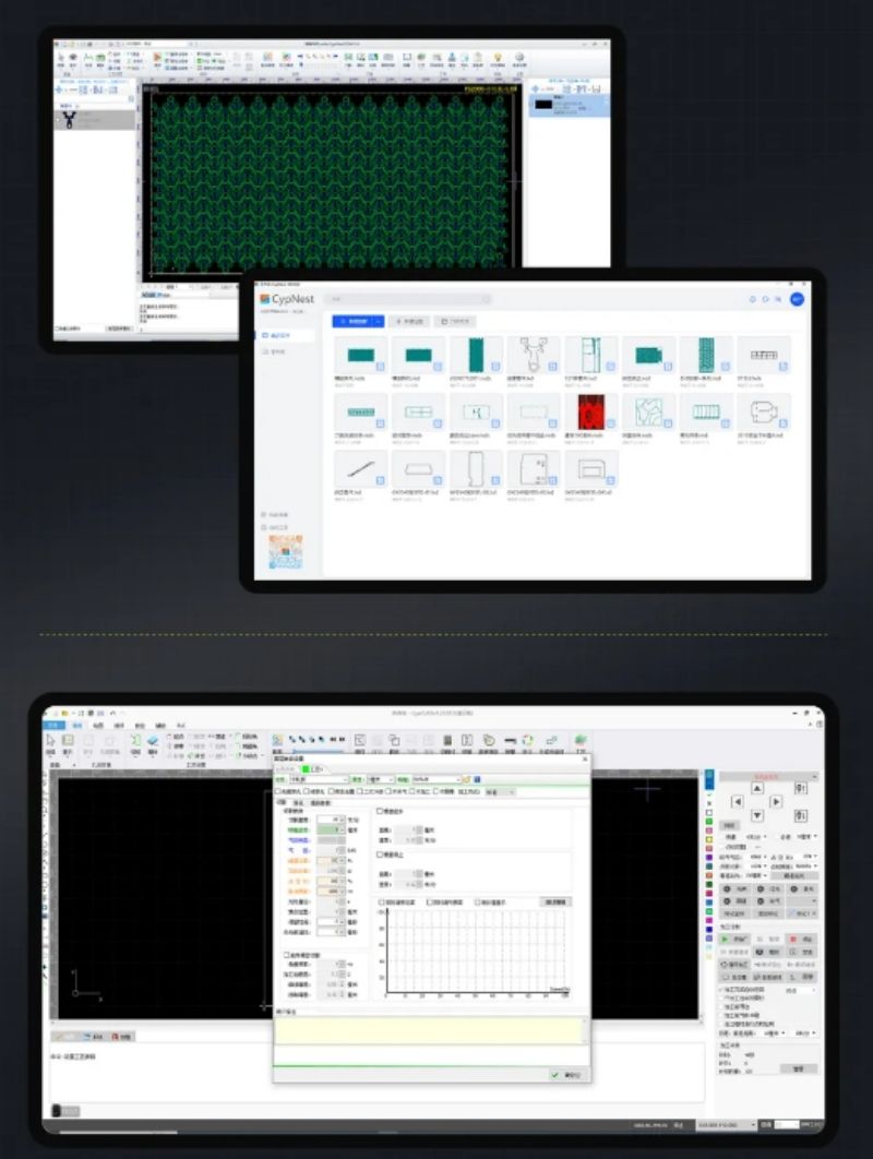自動(dòng)優(yōu)化切割路徑,支持智能排版、快速套料、遠(yuǎn)程推送加工等功能。
